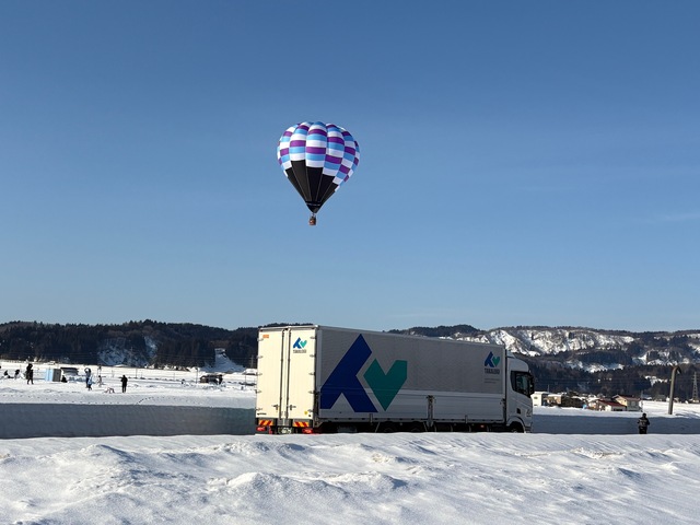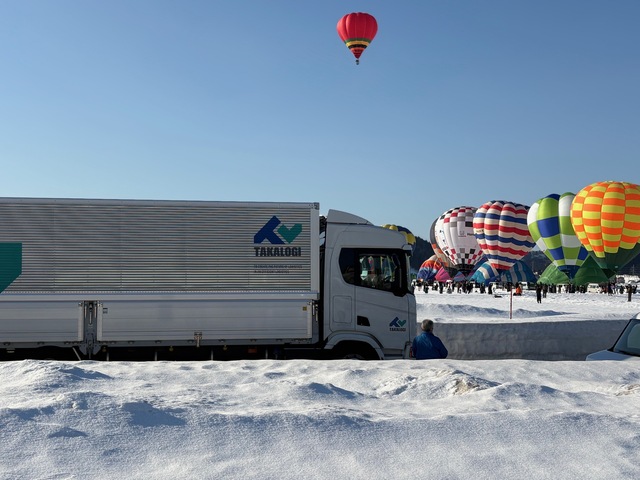 タカロジでは、2/21(土)に新潟県小千谷市で開催された第50回おぢや風船一揆にスカニア車両を持ち込み、気球の打ち上げ前の会場で撮影をさせていただきました。